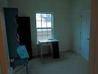This is a little corner for reading or just sitting for a chat. I made the art on the walls. It was really simple. I would do a blog post on the art but I didn't take pictures of each step. Maybe I will recreate the steps to document them, if people are interested. The only thing we have added to the room is a clock above the door. That way I don't lose track of time when I am creating beautiful pieces of art.